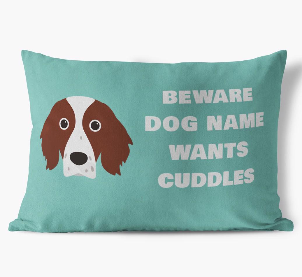 Beware of Cuddles: Personalized Irish Red & White Setter Soft Touch Pillow