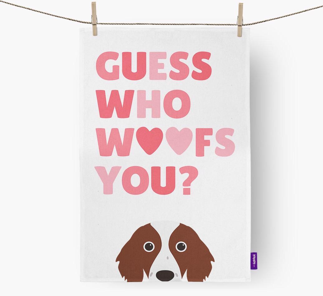 'Guess Who Woofs You?' - Personalized Irish Red & White Setter Dish Towel