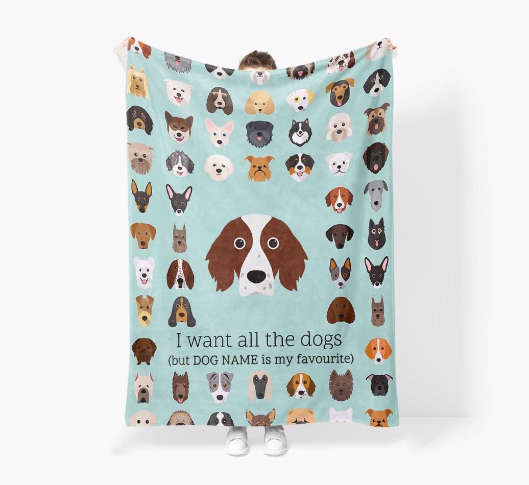 'All The Dogs' - Personalized Irish Red & White Setter Blanket: Premium Sherpa Fleece