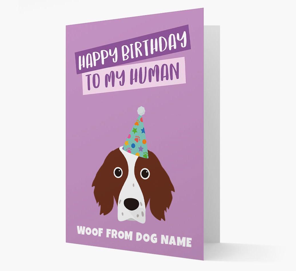 'Happy Birthday to My Human' - Personalized Irish Red & White Setter Card