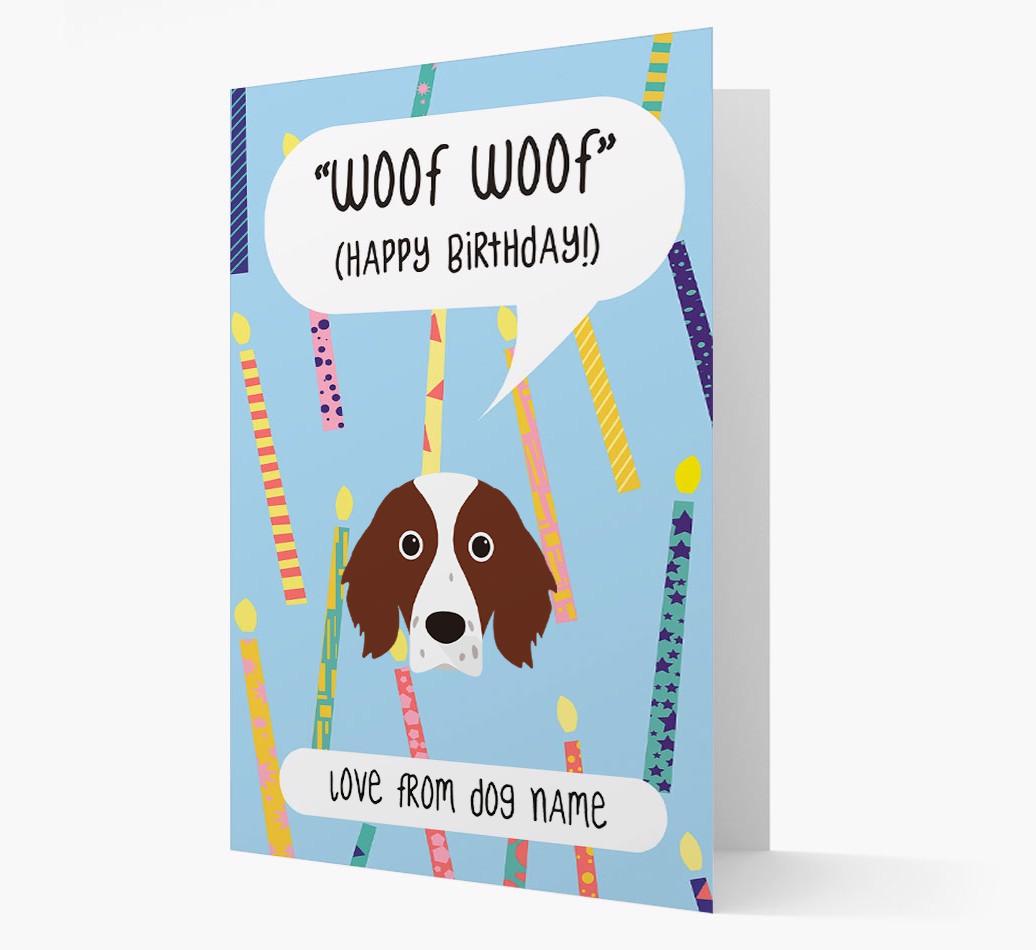 'Woof Woof' - Personalized Irish Red & White Setter Birthday Card