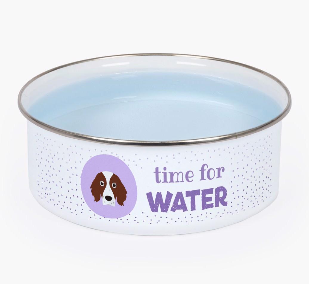 Time For Water: Personalized Enamel Irish Red & White Setter Bowl