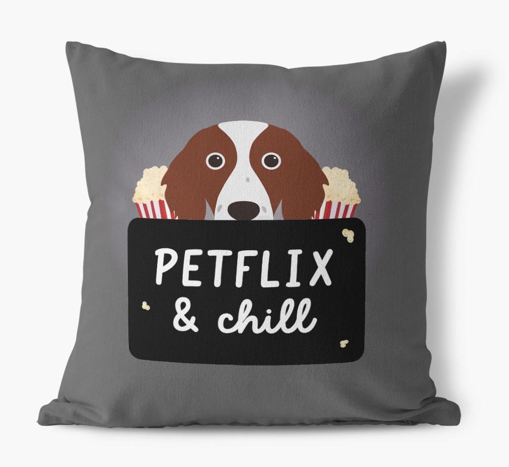 Personalized with your Irish Red & White Setter's icon and available in six furbulous colours, this pillow will remind you that anytime is petflix and chill time!
