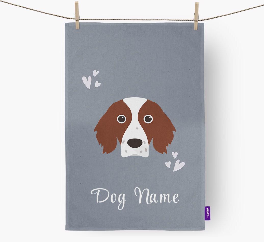 'Hearts' - Personalized Irish Red & White Setter Dish Towel