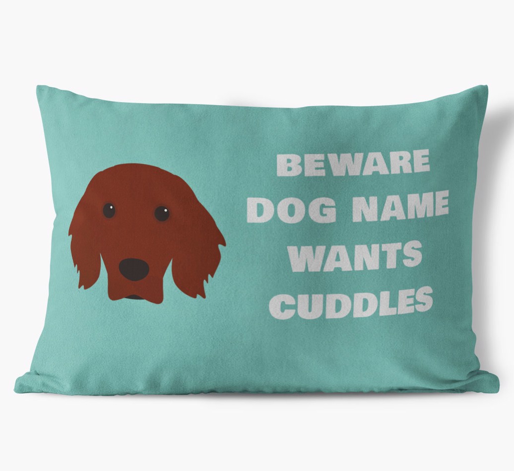 Beware of Cuddles: Personalized Irish Setter Soft Touch Pillow