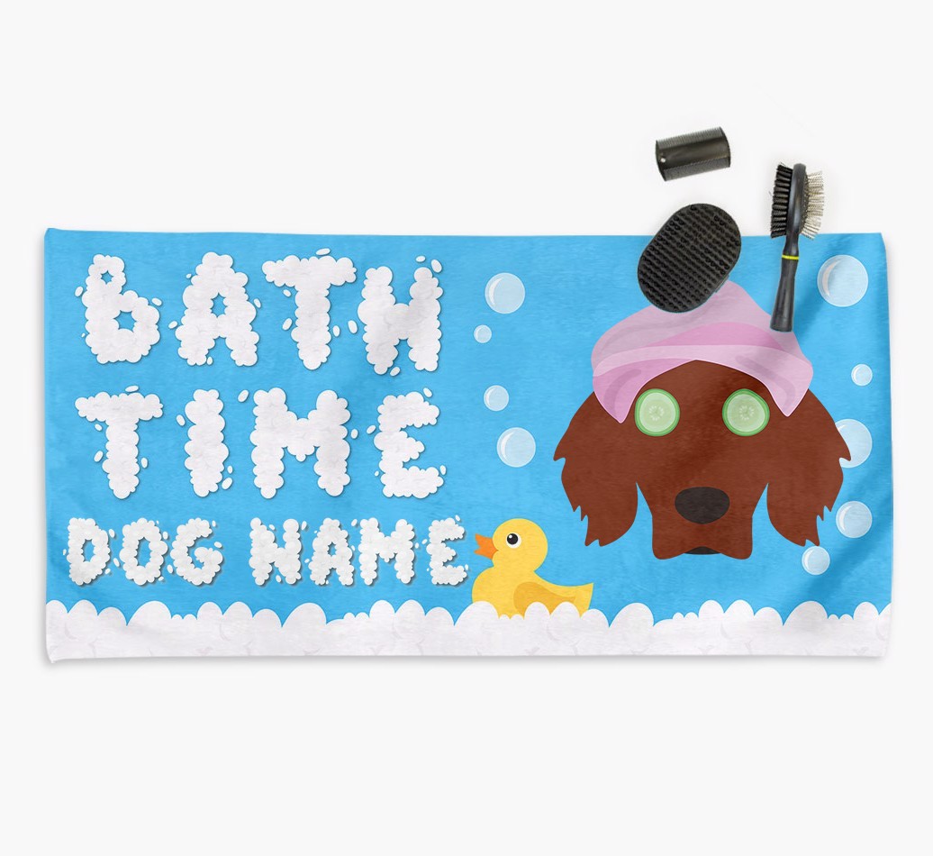 Does Your Irish Setter love bubble baths? Once they've bathed, take their bathtime experience to the next level by wrapping them up in their very own towel, that's personalized just for them.