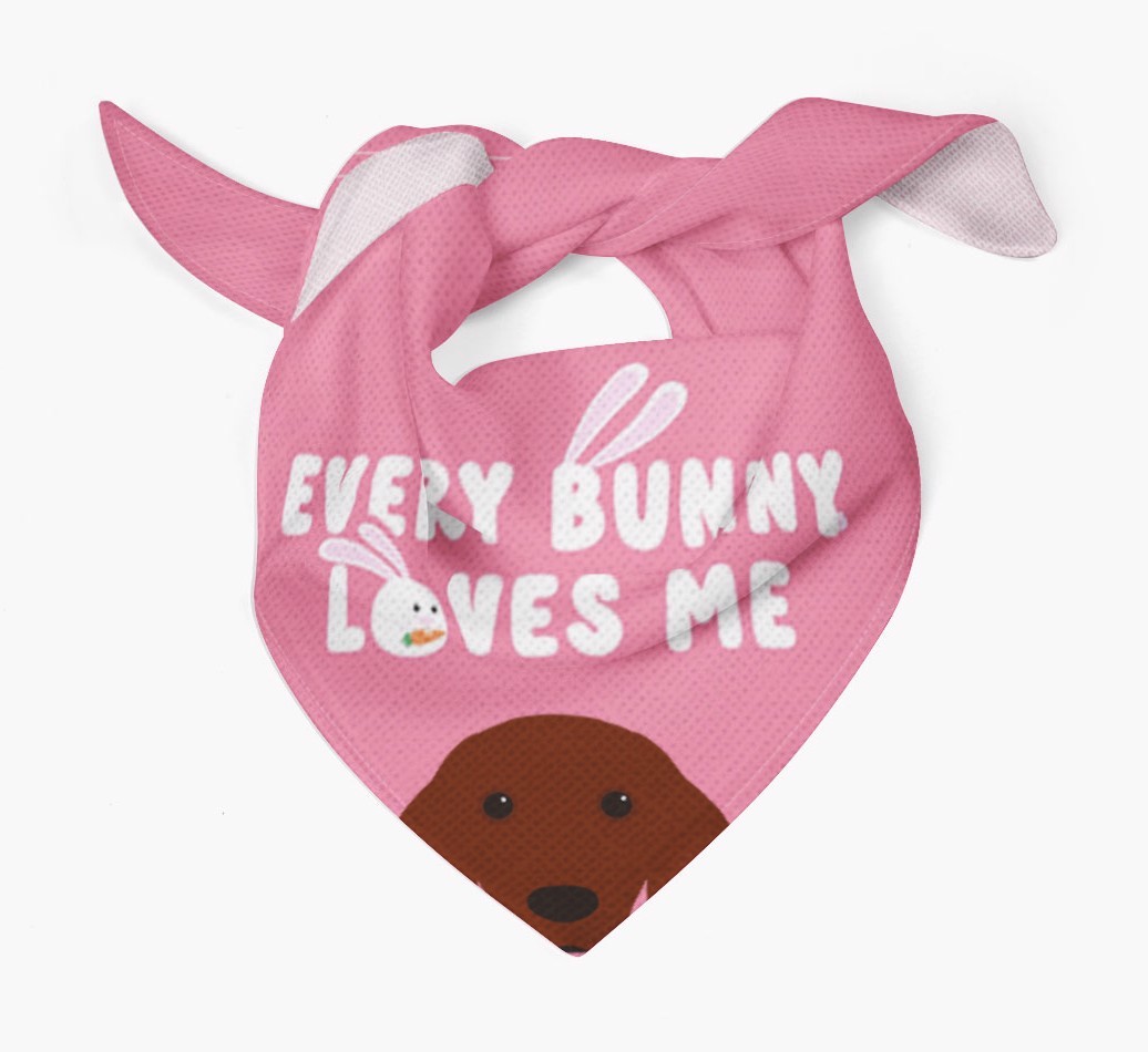 Tailored with the fabulous saying: 'Every Bunny Loves Me', this bandana is the perfect addition to your Irish Setter's wardrobe! Available in four egg-ceptional colors and personalized with your Irish Setter's icon, this is the perfect pawchase for Easter!
