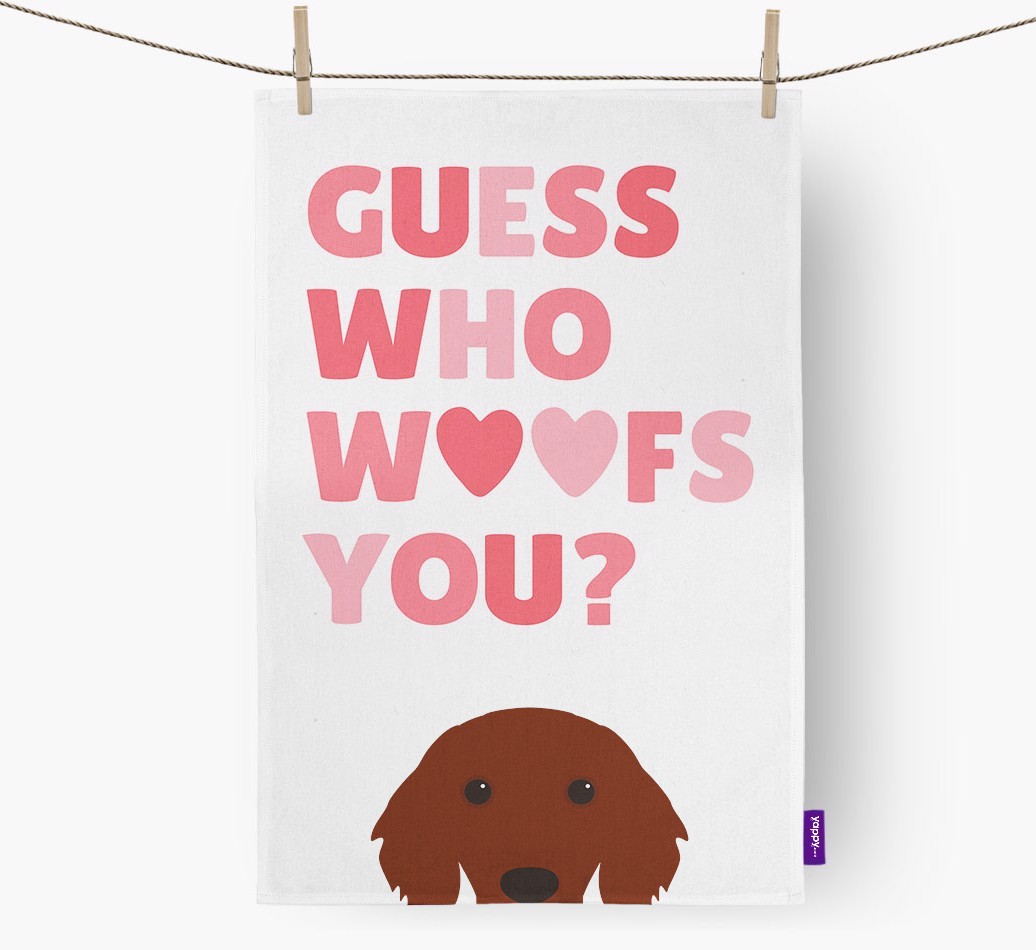 'Guess Who Woofs You?' - Personalized Irish Setter Dish Towel