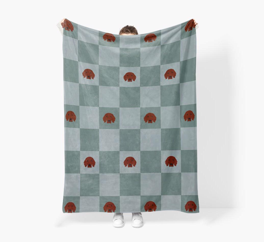 'Checkboard' - Personalized Irish Setter Blanket: Premium Sherpa Fleece