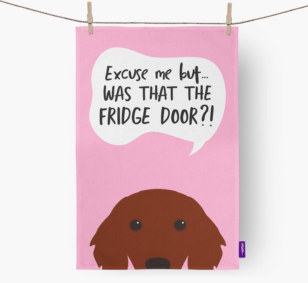 'Was That The Fridge Door?!' - Personalized Irish Setter Dish Towel