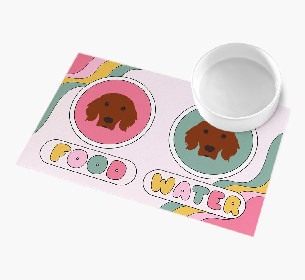 With a swirl of pastel colors and the addition of cute Irish Setter icons, this feeding mat is a stylish place to sit Irish Setter’s food and water bowls!