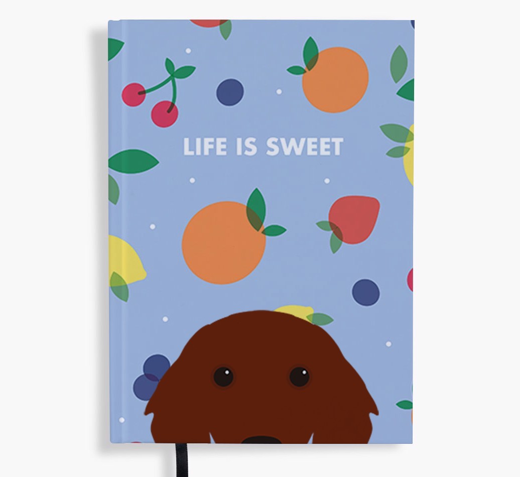 Featuring a seriously scrumptious fruity pattern, this vibrant notebook will add a lovely pop of color to your desk, plus as it’s personalized with your Red Setter’s cute icon, you’ll fur-ever be reminded of sweet times together.