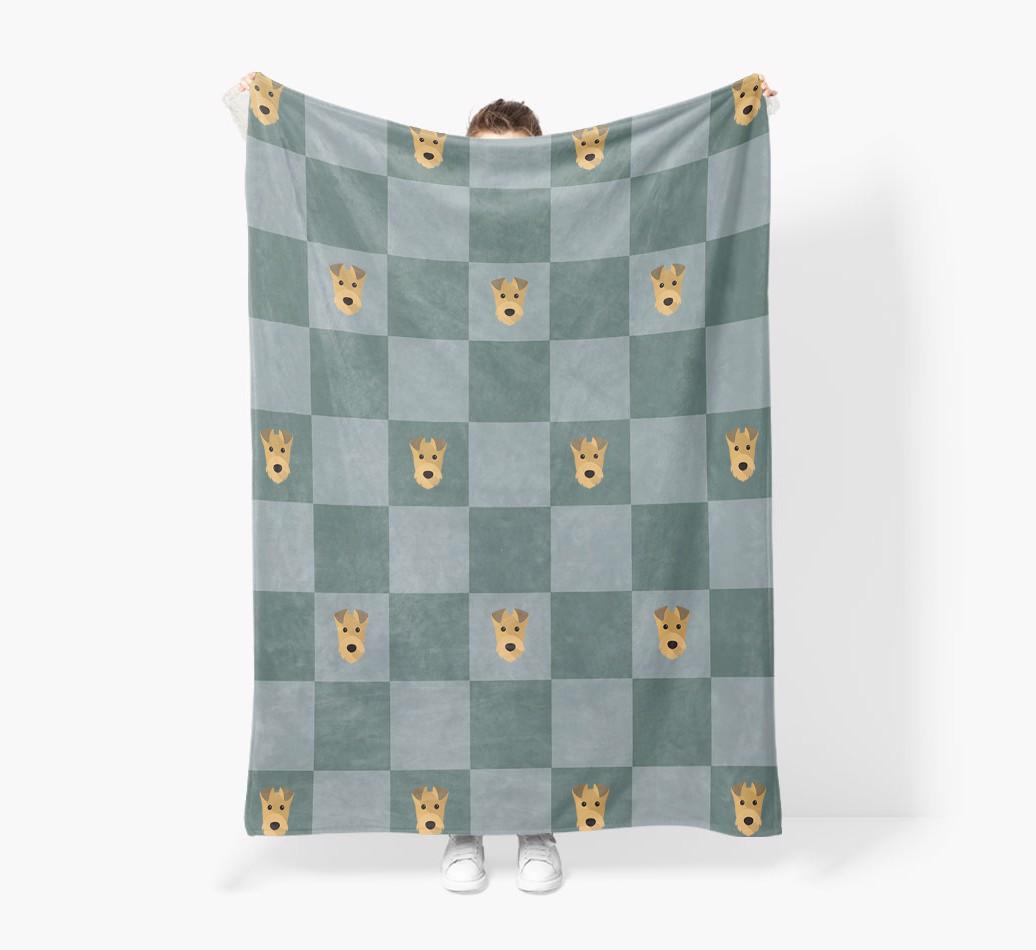 'Checkboard' - Personalized Irish Terrier Blanket: Premium Sherpa Fleece