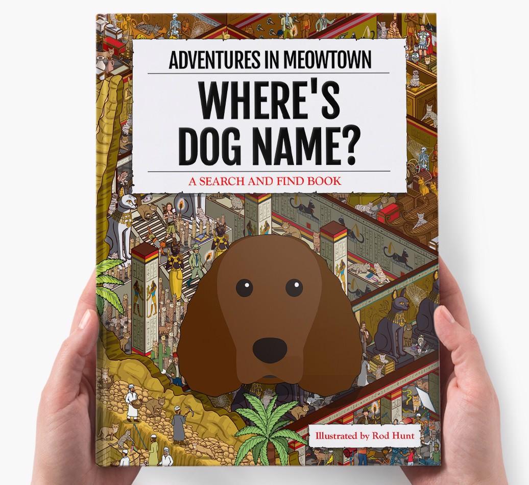 Get ready to unleash your inner detective with our popular Search & Find book, ‘Where’s (insert dog name)?’ It’s the personalized dog book everyone’s yapping about! With twelve beautifully illustrated locations to explore, we challenge you to find your adventurous {breedShortName} on each action-packed page. Can you spot all the canine cameos and funny parodies too?