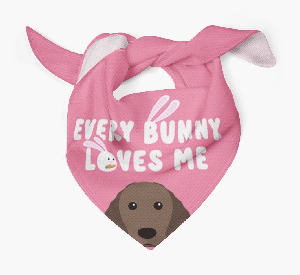 Tailored with the fabulous saying: 'Every Bunny Loves Me', this bandana is the perfect addition to your Irish Water Spaniel's wardrobe! Available in four egg-ceptional colors and personalized with your Irish Water Spaniel's icon, this is the perfect pawchase for Easter!