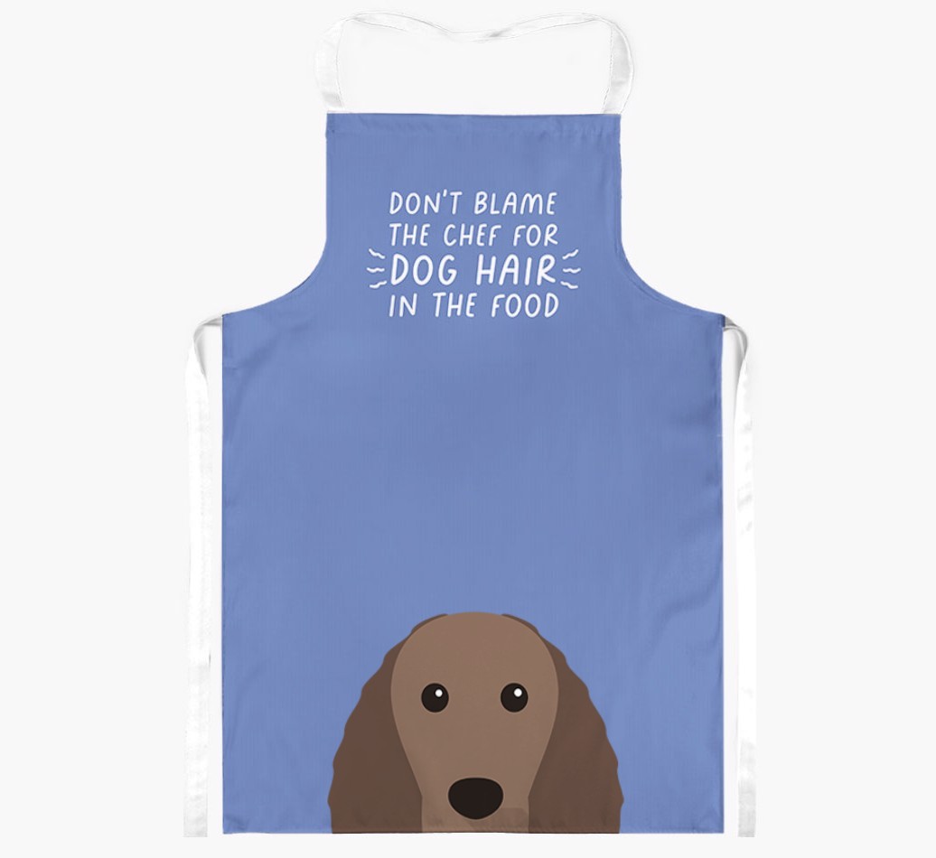 This funny apron will warn friends and family not to blame the chef for dog hairs in their food, they have Irish Water Spaniel to thank for that!