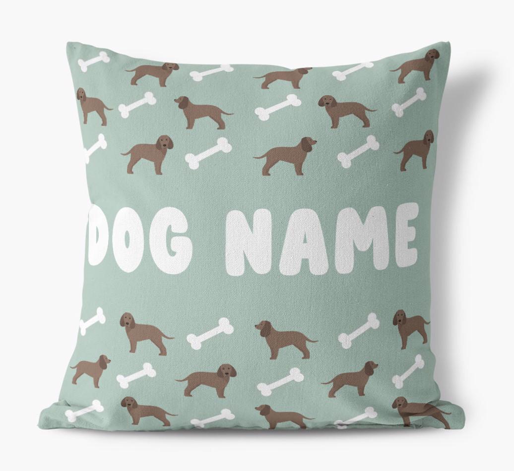 Personalized with Irish Water Spaniel’s name against a background of Water Spaniel icons and bones, this gorgeous pillow is full of pawsonality.