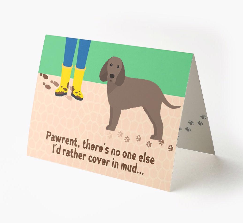 This comical card is sure to delight Irish Water Spaniel's pawrent (without getting muddy), especially as it stars their Water Spaniel's cheeky icon.