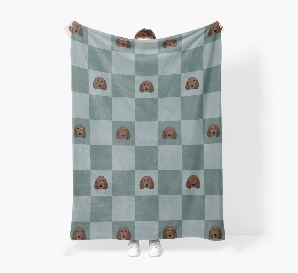 'Checkboard' - Personalized Irish Water Spaniel Blanket: Premium Sherpa Fleece