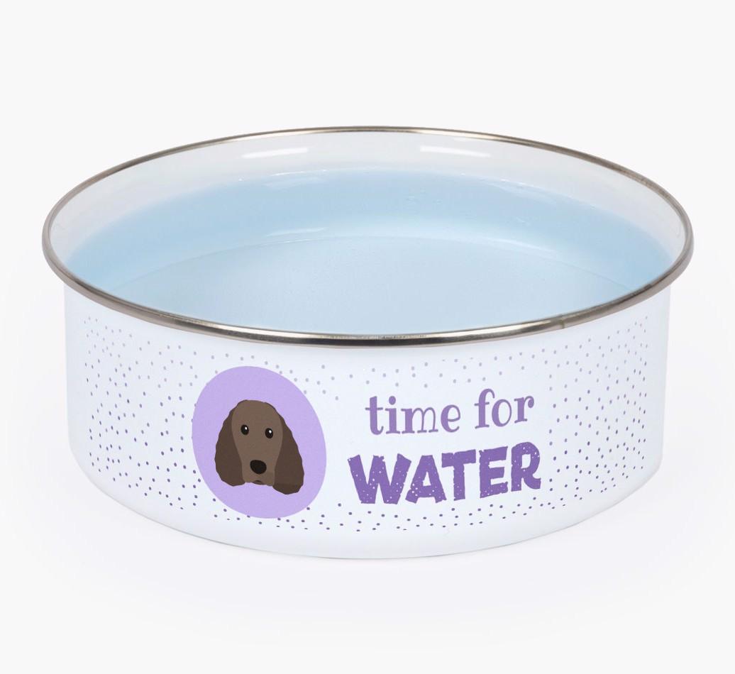 Time For Water: Personalized Enamel Irish Water Spaniel Bowl