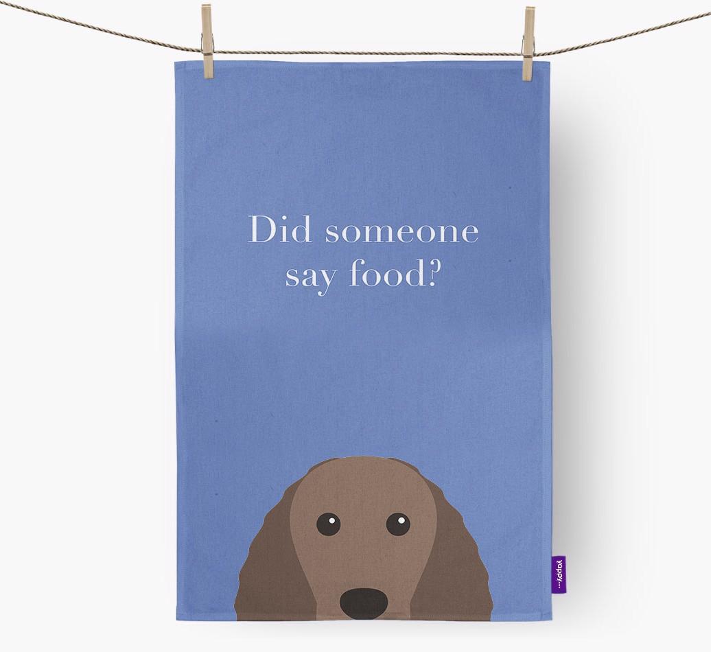 Printed with the question, ‘Did someone say food?’, this dish towel knows exactly what’s on Your Water Spaniel’s mind.