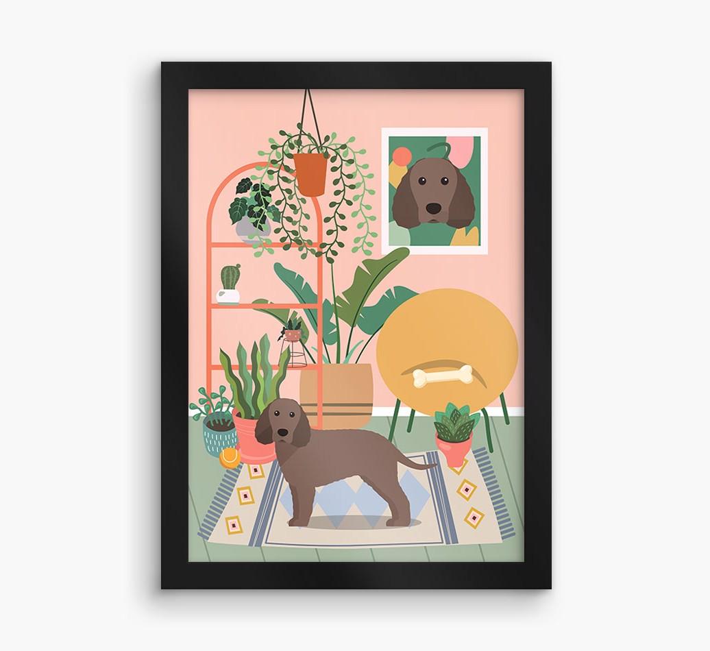This contemporary piece of wall art pairs a chic living space with lovely pastel tones and a jungle of houseplants. Complete with the one that makes your house a home - Irish Water Spaniel! - this print is a wonderful way to display your love for your pooch.