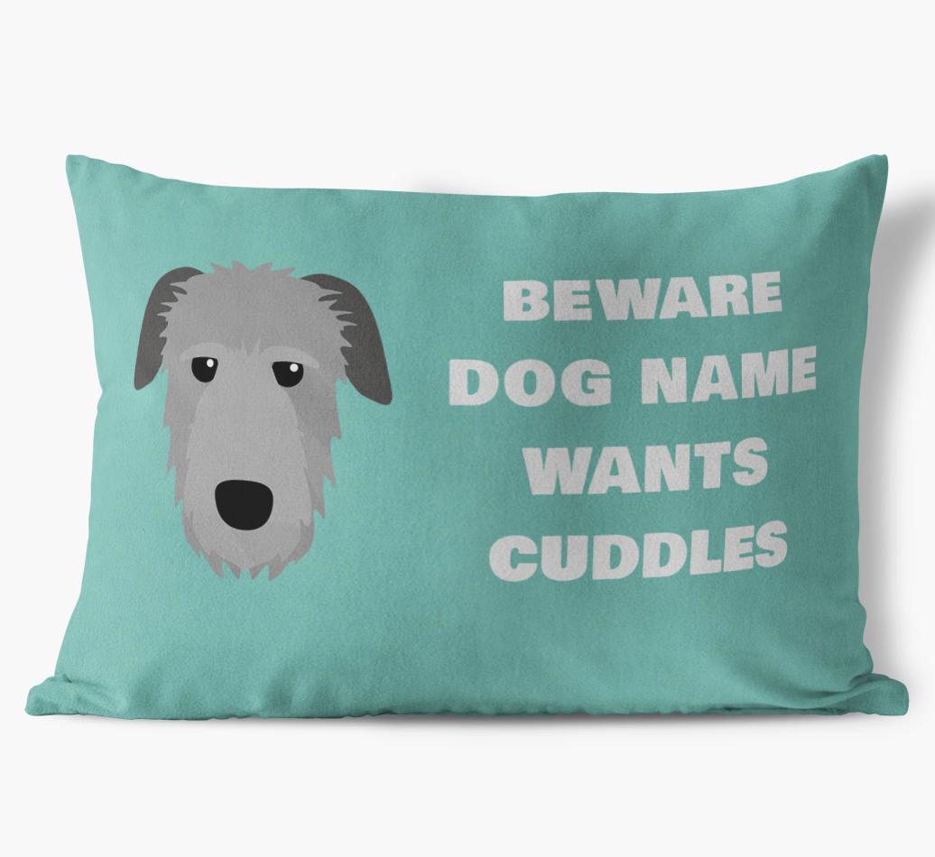 Beware of Cuddles: Personalized Irish Wolfhound Soft Touch Pillow