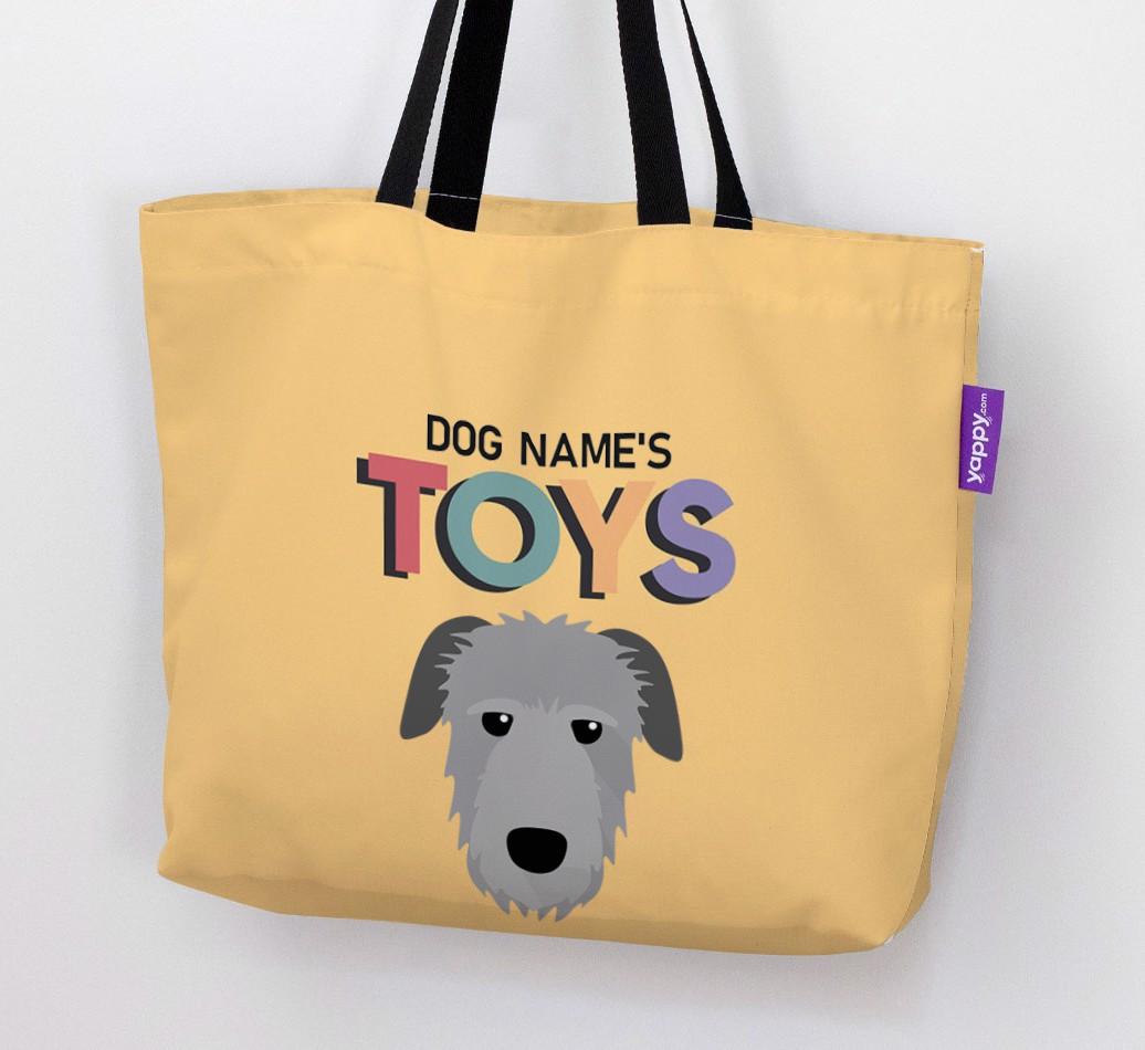 Don’t worry, we’ve got you covered with this pawsonalized canvas bag made for your Irish Wolfhound’s toy collection!