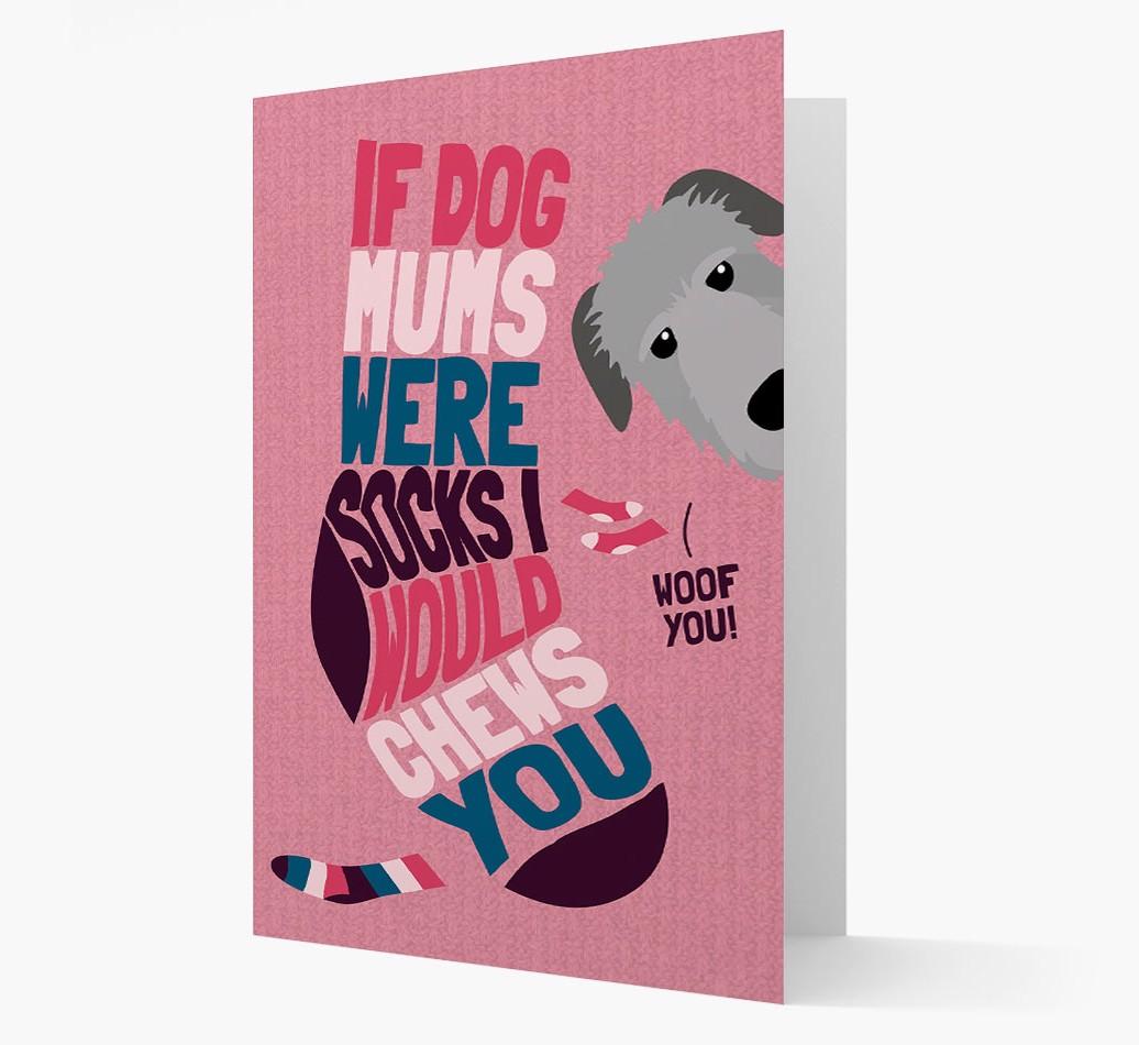 This comical card is pawfect for the Dog Mom who's pawrent to a sock-loving Irish Wolfhound.