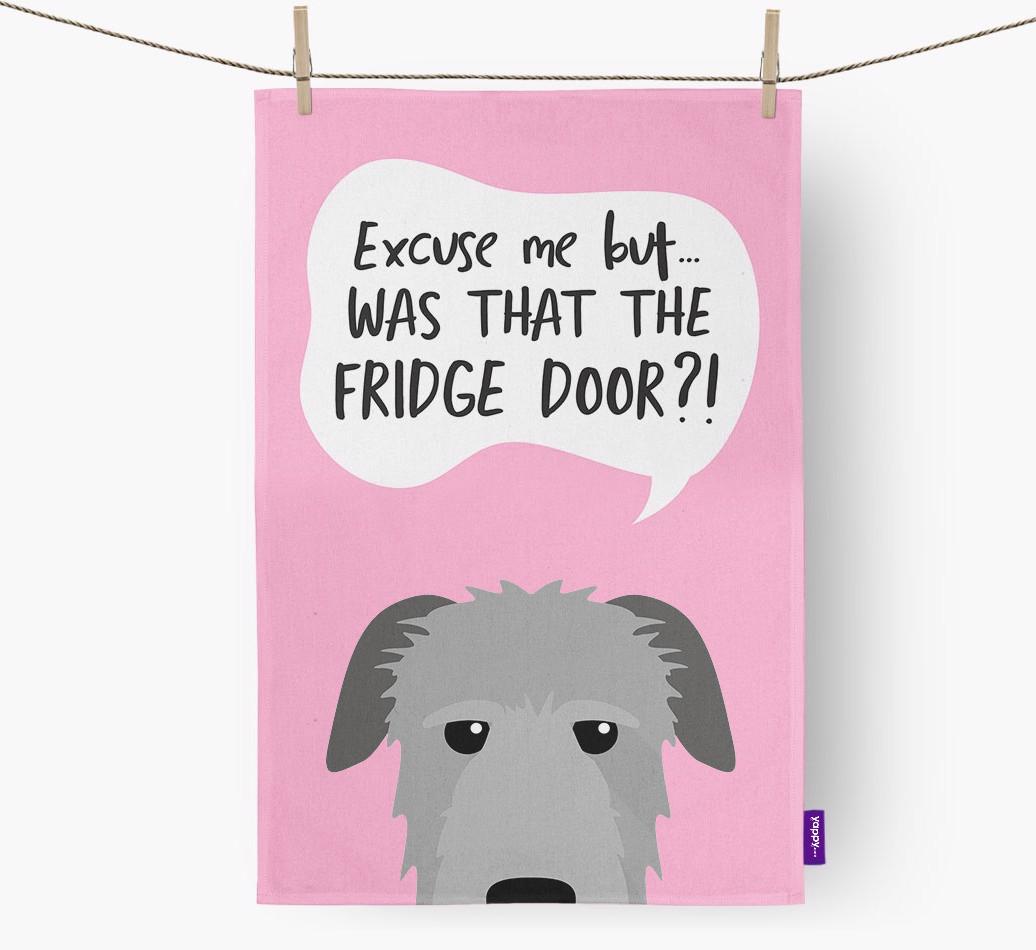 'Was That The Fridge Door?!' - Personalized Irish Wolfhound Dish Towel