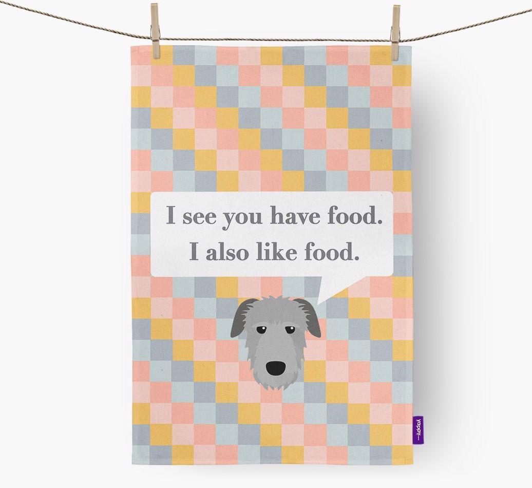If your Irish Wolfhound is a full time snack machine, this dish towel may be the ideal way to warn your guests.