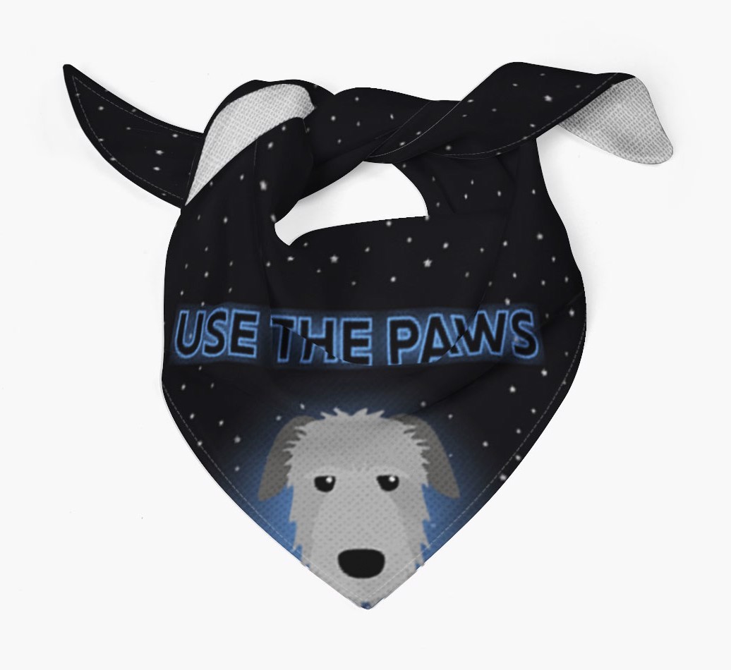 Featuring a starry night sky and glowing text, this bandana is made extra special with the addition of your Irish Wolfhound's cute icon.
