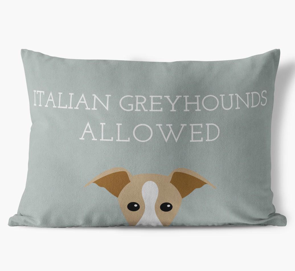 This exclusive, luxurious pillow is printed with the words ‘Italian Greyhounds Allowed’, which I’m sure Your Italian Greyhound would definitely approve of.