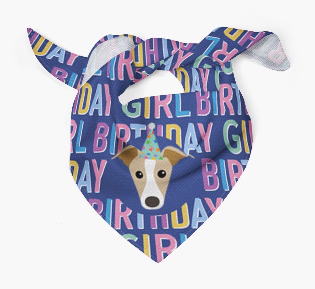 Featuring a text pattern that reads 'birthay girl' and personalized with Italian Greyhound's cute icon (complete with a fun party hat), your Iggy will look simply pawgeous on their special day when they're wearing this bandana.