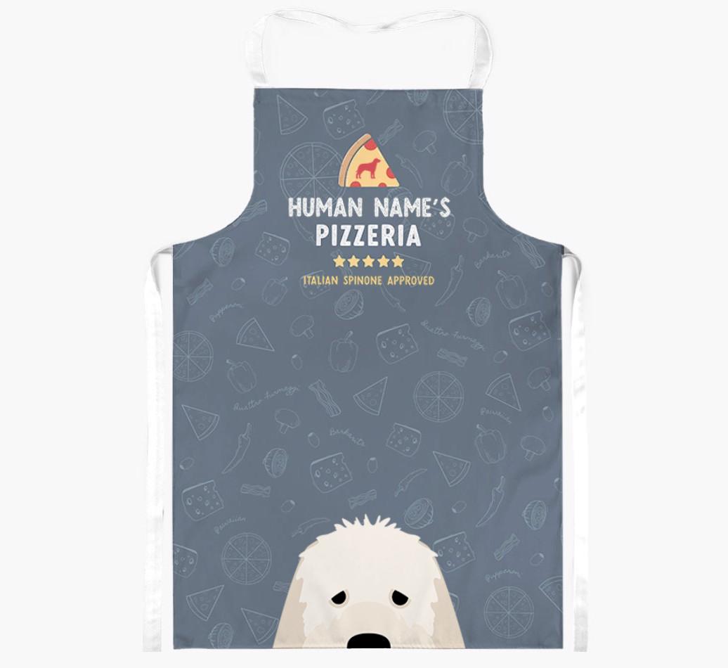 Featuring your furry friend's icon and lick of approval, plus your chosen human name, this apron is pawfect for anyone who considers themselves a pizza maestro in the kitchen. Available in a choice of 5 rustic colors, it'll make any Spinone lover happy.