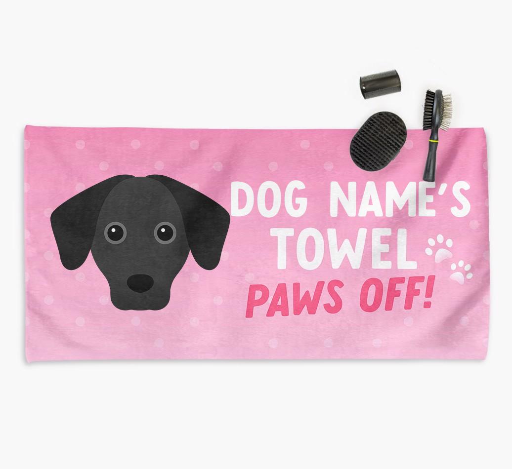 Perfect for messy pups and for pampering your Jack-A-Bee at bathtime, this soft and absorbent towel is made for cleaning your mucky pup and drying them off in a flash. It's personalized with Jack-A-Bee's name and icon and is printed with a message for everyone else to keep their paws off it!