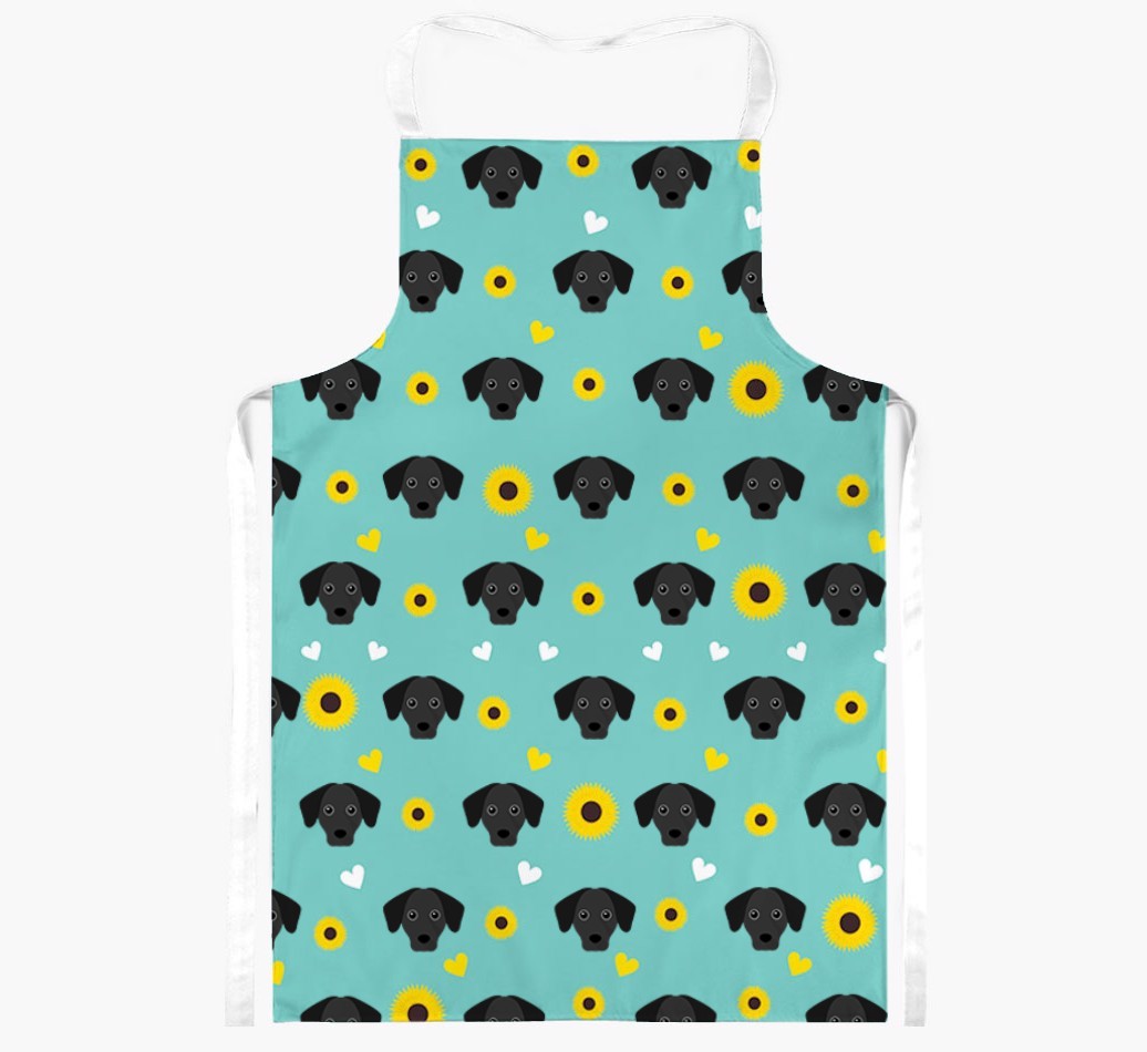 This apron has a delightful sunflower and heart pattern, and best of all - it's personalized with Jack-A-Bee's face too! This cute and colorful apron is sure to put a smile on every dog lover's face.
