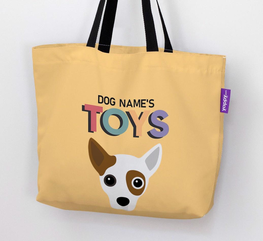 Don’t worry, we’ve got you covered with this pawsonalized canvas bag made for your Jackahuahua’s toy collection!