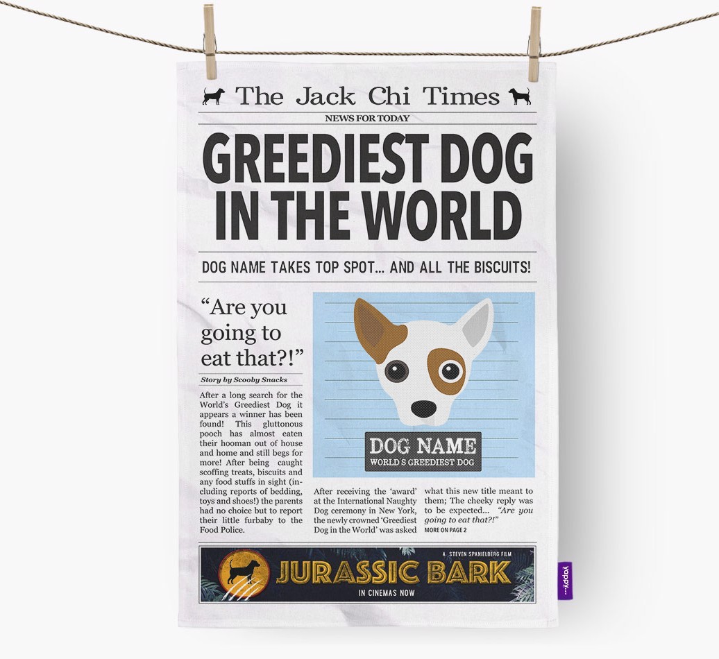 This unique dish towel puts Jackahuahua truly in the spotlight (as if they weren’t already). It features a Yappy exclusive Jack Chi mug shot icon as well as two smaller Jack Chi silhouettes.