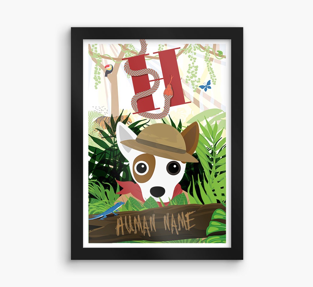 Starring your Jack Chi as an intrepid explorer, this jungle-themed print will look rawr-some wherever it's displayed in the home.