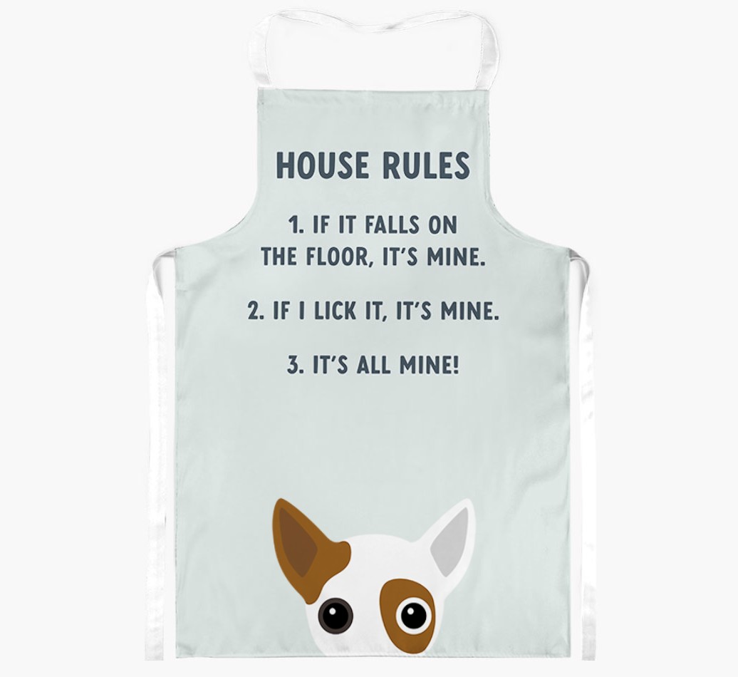 A fun way to show off your greedy pup, this stylish apron is personalized with your furry friend's icon and features their rules when it comes to food.