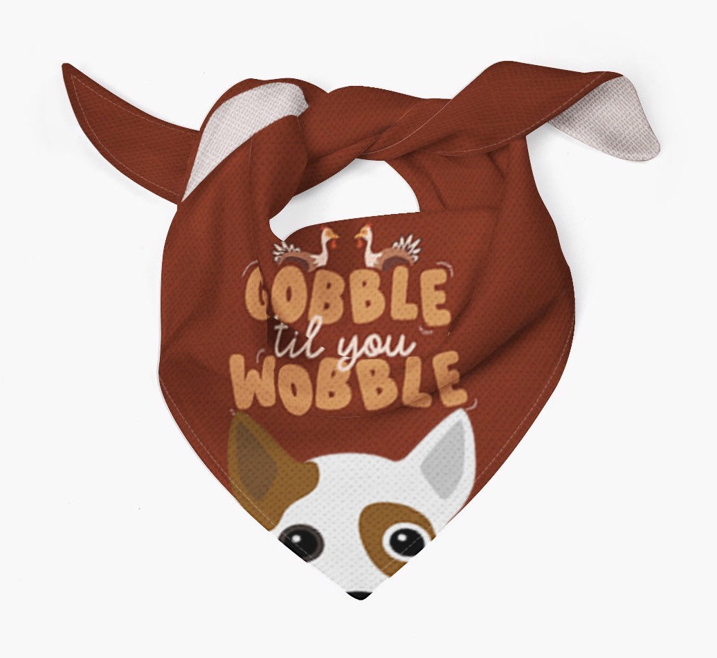 This cute custom bandana is printed with the phrase of the season, "gobble til you wobble"!