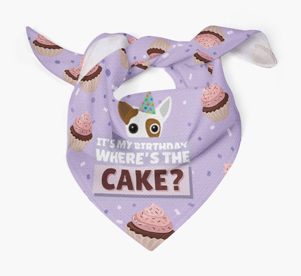 'Where's the Cake?' - Personalized Jackahuahua Birthday Bandana