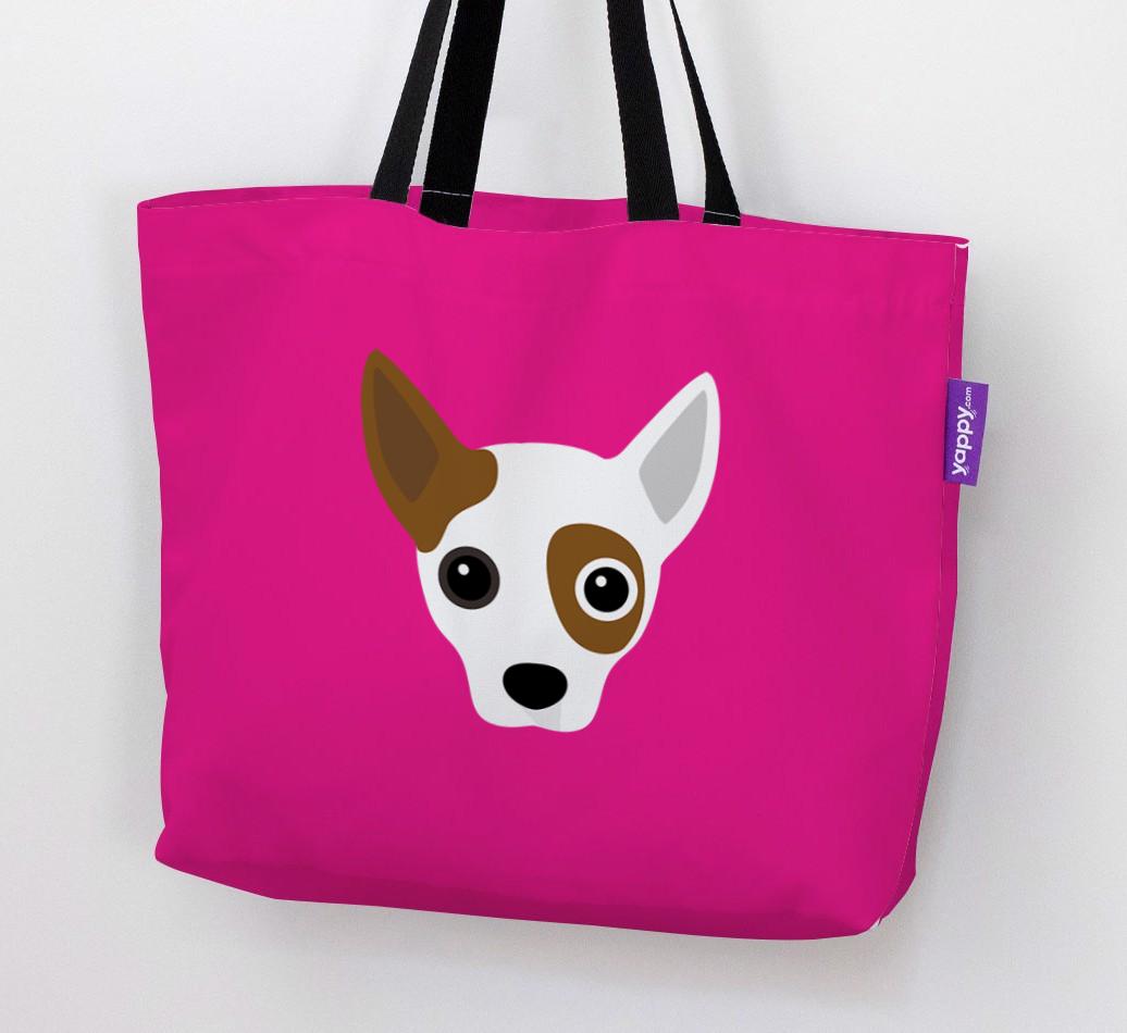 This Canvas Bag features an exclusive Jackahuahua icon printed on a bright, bold background.