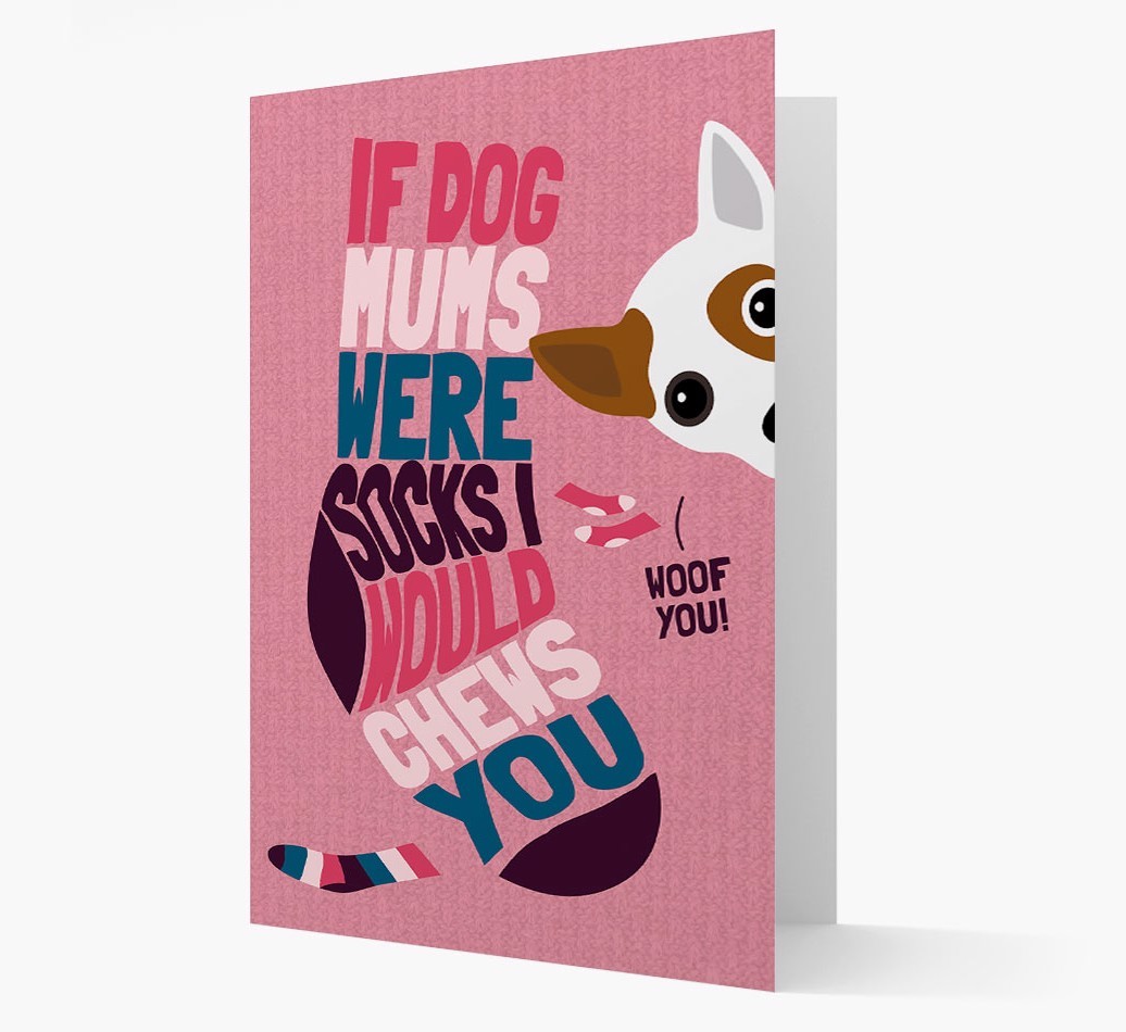 This comical card is pawfect for the Dog Mom who's pawrent to a sock-loving Jack Chi.