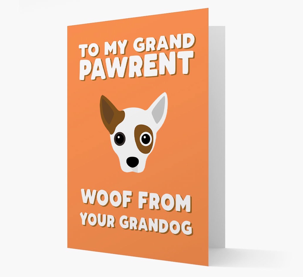 Featuring your Jackahuahua's pawsome icon and available in four eye-catching colors, Jackahuahua's grandpawrent will feel the woof each time they look at this card.