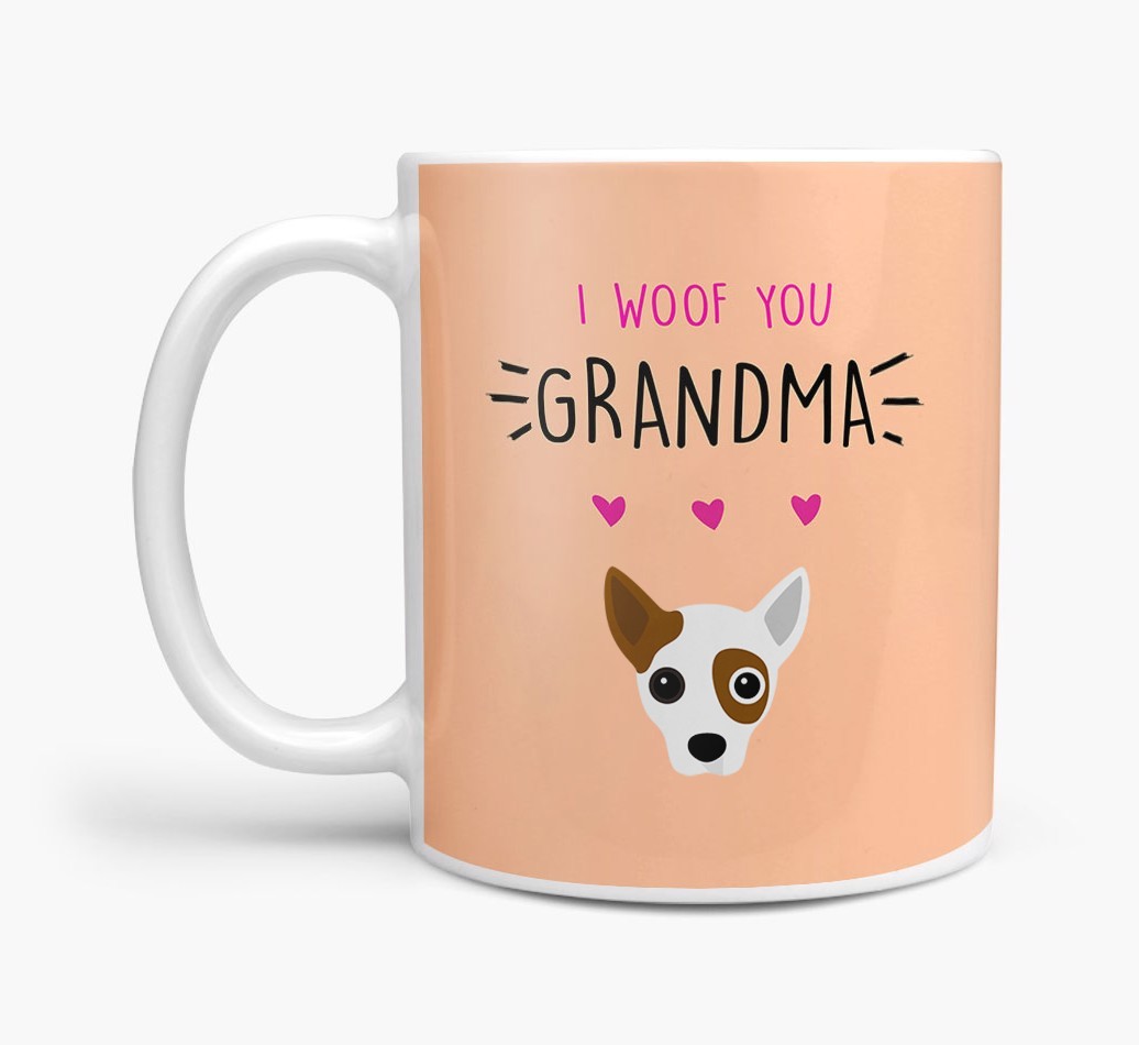 Personalized with your pup's adorable icon, this mug is a charming way to treat your pup's grandma and express how much you and Jackahuahua woof them.