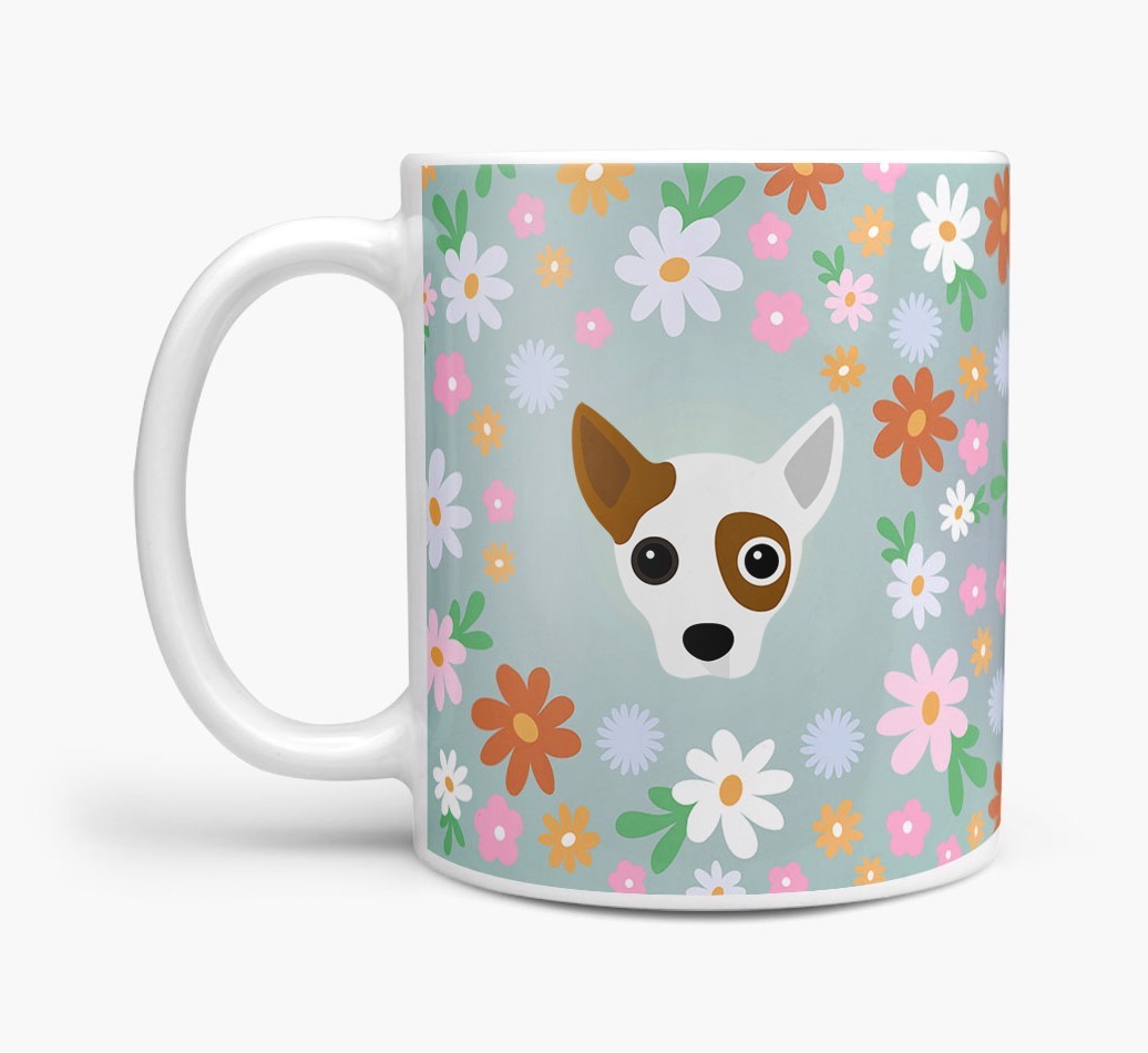 Featuring a colorful bunch of flowers, this mug is printed with the words 'woofly grandma' on one side of the mug and your Jack Chi's cute icon on the other. Bloomin' lovely!