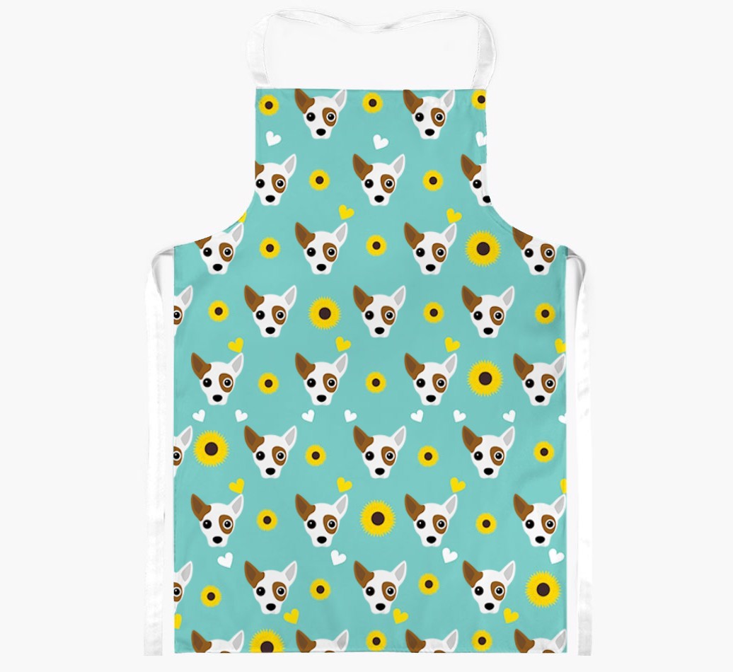 This apron has a delightful sunflower and heart pattern, and best of all - it's personalized with Jackahuahua's face too! This cute and colorful apron is sure to put a smile on every dog lover's face.