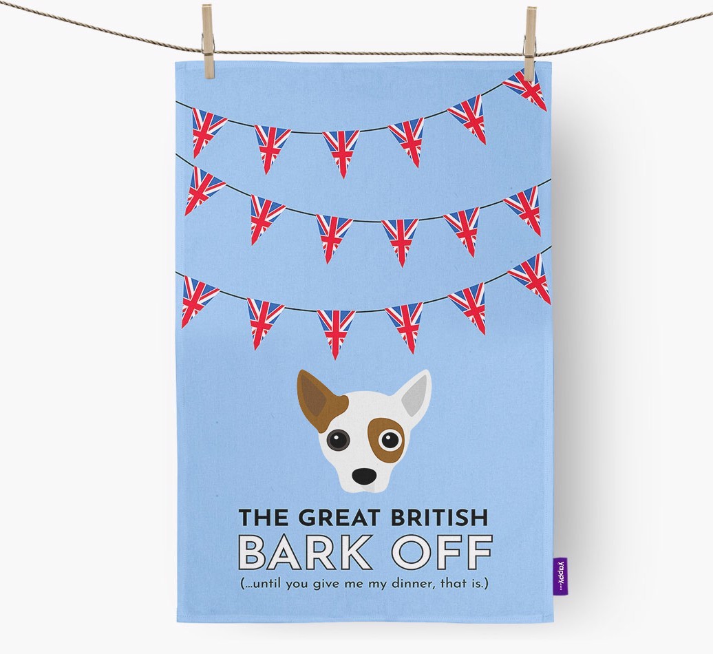 The Great British 'Bark' Off Dish Towel with Jackahuahua Icon